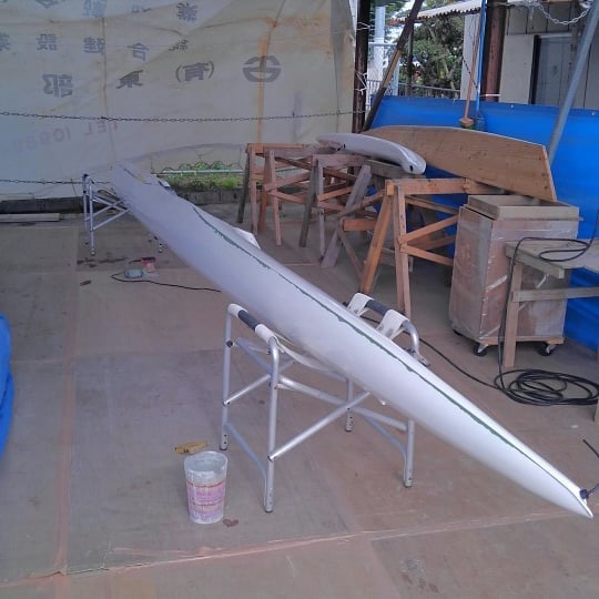 年末年始でOC1の外装修理を行い新艇のようにきれいに仕上げました。というかほとんど新艇のような状態でサイドのジョイントのほとんどのゲルコートの剥がれていたのでその部分を剥がして、埋めてきれいに塗装しました。