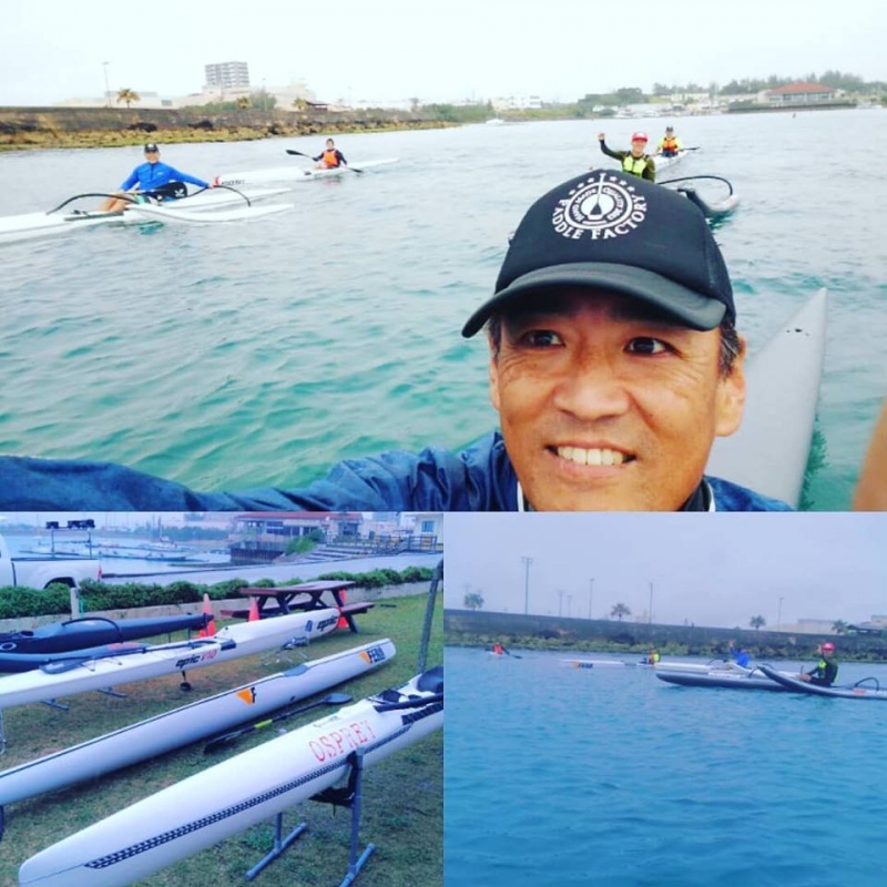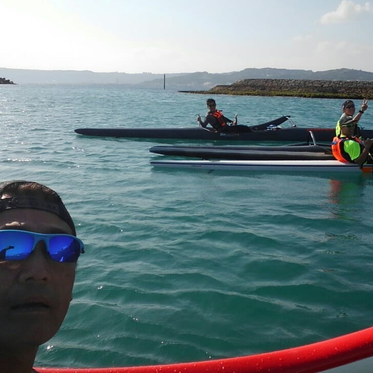内地のパドル仲間であり親友が購入して沖縄で私が保管しながら使用していきます。進水式には5名の仲間が集まりました。